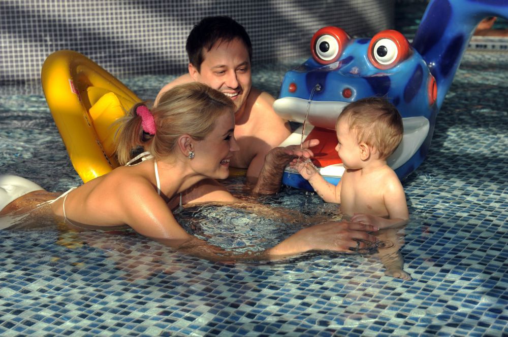 A kis család kedvence a mediterrán szálloda mellett található termálfürdő lett, ahol a fürdés után szaunáztak, relaxáltak, és masszázst is kipróbáltak. Mindent persze felváltva. A szülők kicsit tartottak attól, hogy fogja a kisfiúk fogadni az óriási medencéket és bele merészkedik-e a vízbe? Noelt ugyanis először vitték pancsolni. A kisfiú pedig úgy viselkedett, mintha a világ legtermészetesebb dolga lett volna a víz és az úszógumi.